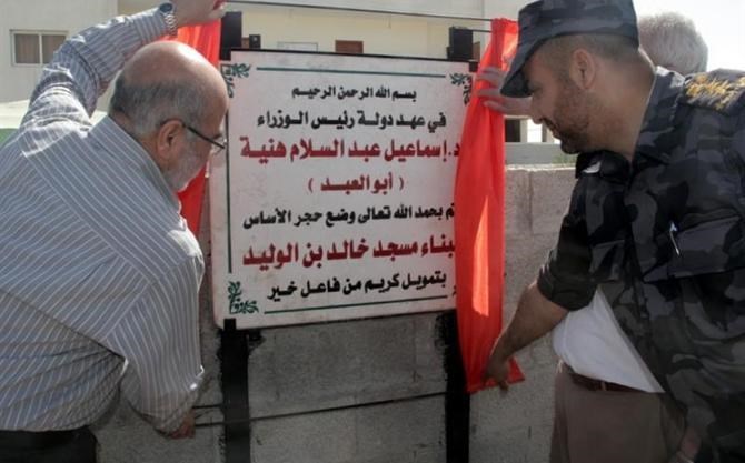 وضع نائب رئيس الوزراء الفلسطيني المهندس زياد الظاظا، صباح اليوم الاثنين، حجر الأساس لمشروع بناء مسجد خالد بن الوليد في مهبط الطيران في منطقة انصار غرب مدينة غزة .