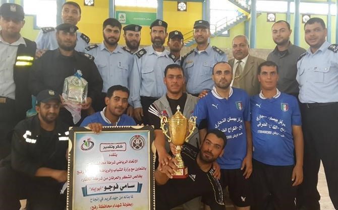 وشارك في البطولة ثمانية فرق من مختلف الأجهزة الأمنية وإدارات الشرطة بمحافظة رفح, حيث تم تكريم جهاز المرور بكأس المركز الأول، وتكريم أفضل لاعب مازن أبو جزر، وأفضل حارس نائل أبو غالي وهداف البطولة يوسف أبو عرمانة.
