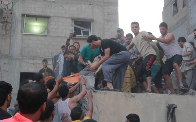 وأغارت الطائرات الصهيونية منذ صباح اليوم على العديد من منازل المواطنين في أنحاء متفرقة من قطاع غزة , كان أبرزها استهداف منزل يعود لعائلة غنـام في مخيم يبنا بمدينة رفح مما أدى لارتقاء خمسة شهداء من العائلة , فيما تواصل طواقم الاسعافات والدفاع المدني بحثها عن المفقودين تحت الأنقاض.