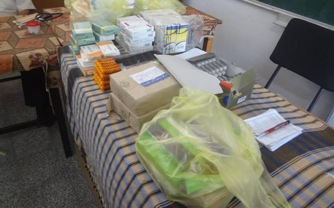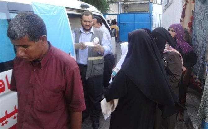 وتوزع أطقم الخدمات العلاج الطبي للمصابين والجرحى والمرضى من النازحين في مراكز الإيواء على مدار 24 ساعة.