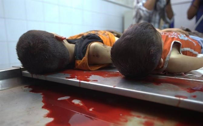وفي منطقة شارع النفق بمدينة غزة استشهد أب وثلاثة أطفال باستهداف مباشر من طائرات الاحتلال وهم: نصر زياد الريفي وعبد الله طارق الريفي وعمر نصر الريفي ومحمد زياد الريفي.