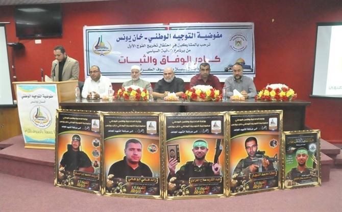 خرّجت مفوضية التوجيه الوطني بوزارة الداخلية بمحافظة خانيونس جنوب قطاع غزة عشرات الضباط في الوزارة ضمن برنامج النخبة السياسي "كادر الوفاق والثبات"، في قاعة مركز تدريب تعليم خانيونس.