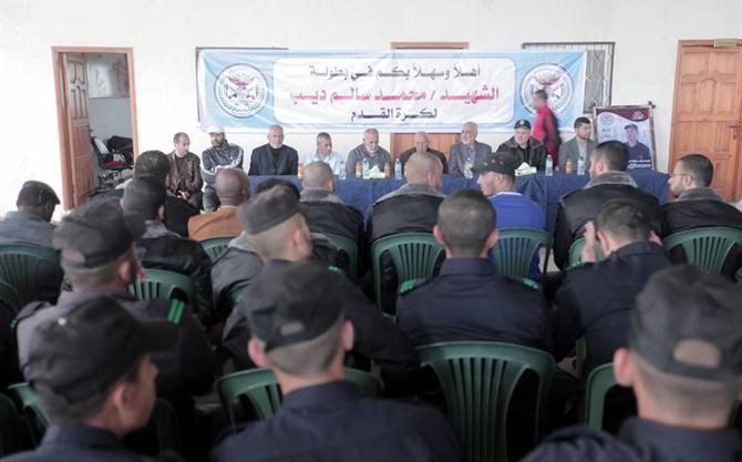 واستضاف حفل الاختتام عائلة الشهيد محمد خليل سالم ديب، أحد أفراد طاقم التدريب بالكلية، والذي استشهد خلال العدوان الأخير على القطاع.