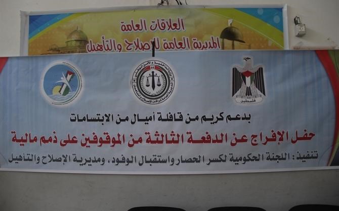 أفرجت المديرية العامة للإصلاح والتأهيل بوزارة الداخلية والامن الوطني ظهر اليوم الخميس عن 14 نزيلاً بغزة من أصحاب الذمم المالية، بعد تسوية ملفاتهم مع الأشخاص الدائنين بدعم ومساهمة من قافلة أميال من الابتسامات .