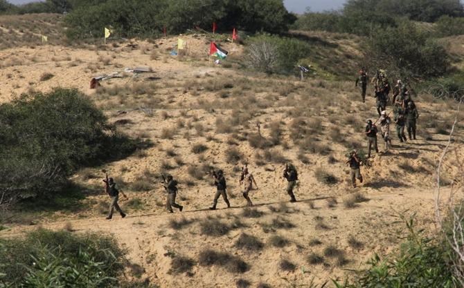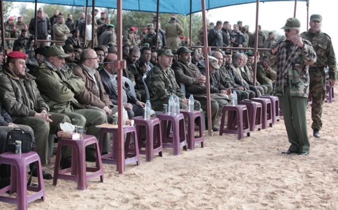 من جانبه استعرض اللواء ركن حسين أبو عاذرة قائد قوات الأمن الوطني وجيش التحرير شرحاً مُفصلاً لتفاصيل المناورة العسكرية قبل البدء بتنفيذها , مُشيراً إلى أنها تُمثل استراتيجية عسكرية لتحرير أراضينا المُحتلة.