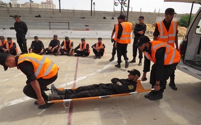 عقد معهد ضباط الاسعاف وتأهيل السائقين في الخدمات الطبية دورة في الاسعاف الأولي لطلاب مركز الامام الشافعي للتدريب المهني في مدينة غزة .