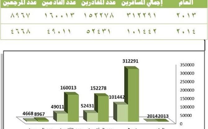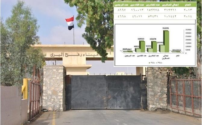 وبمقارنة تلك الأعداد مع أعداد المسافرين خلال عام 2013 – الذي شهد تحسناً في عمل المعبر – نجد أن عدد المتنقلين عبر المعبر يفوق أعداد عام 2014 بأكثر من ثلاثة أضعاف حيث بلغ عدد المسافرين في كلا الاتجاهين 312291 مسافراً منهم 152278 مغادراً، و160013 قادماً، الأمر الذي يعكس تردّياً كبيراً في عمل المعبر.