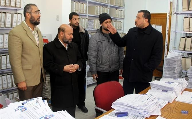 واطلع وكيل وزارة الداخلية على آلية العمل في برنامج الدمغة الالكترونية الذي يبدأ من كتبة العرائض إلي خروج المعاملة للمواطن، حيث زار كافة مرافق العمل بمديرية الاحوال المدنية بغزة .