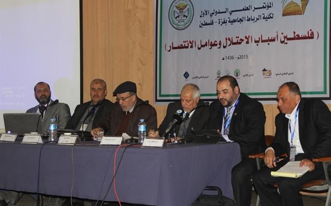 في حين تمحورت الجلسة الأولى "ب" حول " احتلال فلسطين والقدس عبر العصور " برئاسة د. زكريا السنوار أستاذ التاريخ المشارك في الجامعة الإسلامية وبحضور جمع من الباحثين والطلاب.