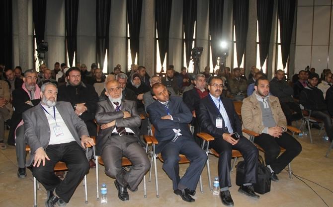 وتمحورت الجلسة الأولى "أ" ر حول " احتلال فلسطين والقدس عبر العصور " برئاسة د. سالم سلامة رئيس رابطة علماء فلسطين بحضور جمع من الباحثين والطلاب.