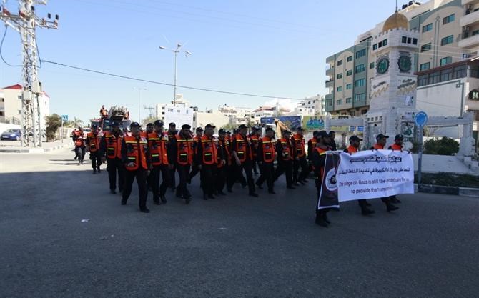 وسلَّم المشاركون في المسير رسالة مكتوبة باسم الدفاع المدني بهذه المناسبة للمجلس التشريعي والأمم المتحدة والصليب الأحمر ومجلس الوزراء الفلسطيني.