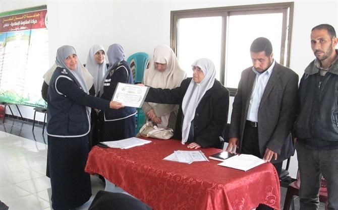 وحضر حفل الاختتام المقدم خليل أبو جليدان مدير مكتب التوجيه السياسي برفح والسيدة أم حسن نصر الله مدير جمعية الريحانة والسيدة فايزة البواب مدير الحركة النسائية، والنقيب هادي حسن مدير الشرطة النسائية برفح، والسيدة هدى حمد رئيس قسم العمل النسائي بالتوجيه السياسي في محافظة رفح .