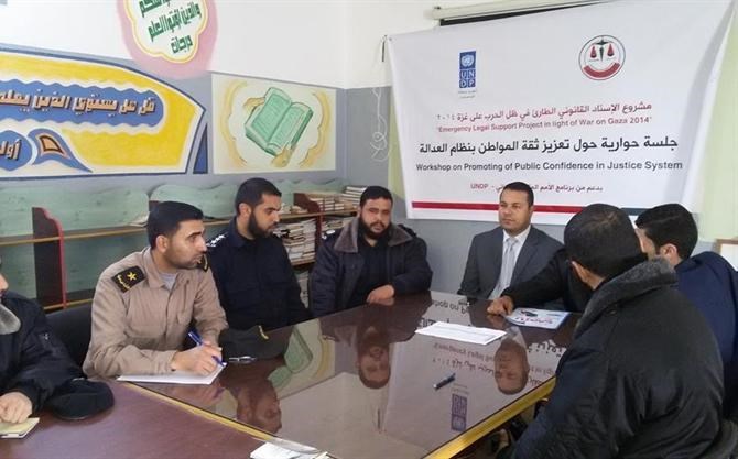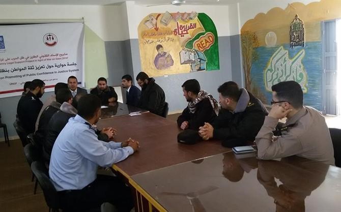 عقد مركز الإصلاح والتأهيل بالمحافظة الوسطى جلسة حوارية بعنوان " تعزيز ثقة المواطن بنظام العدالة " وذلك بحضور وفد من مشروع الإسناد وبالتعاون مع نقابة المحامين بفلسطين.