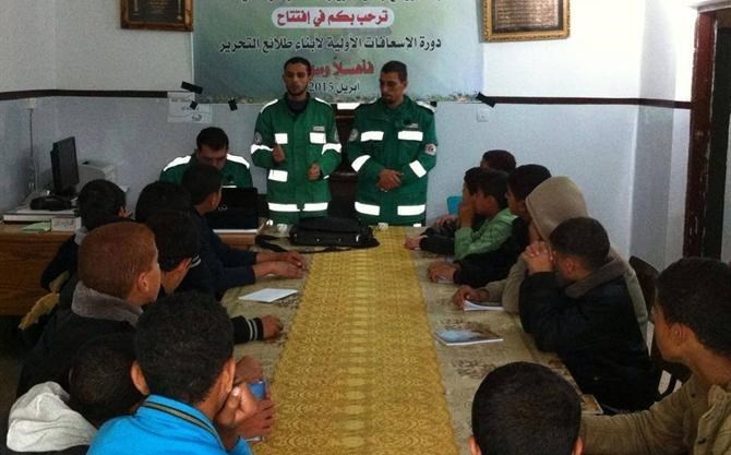 افتتحت وحدة الإسعاف والطوارئ بمديرية الخدمات الطبية مساء السبت دورة إسعافات أولية لطلاب طلائع التحرير بالتعاون مع جمعية الزيتونة بالمحافظة الوسطى.