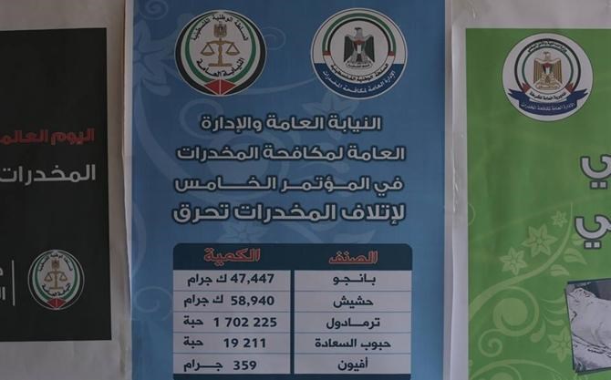 عقدت الشرطة الفلسطينية ، صباح الاثنين، بالتعاون مع النيابة العامة المؤتمر الخامس لإتلاف كميات من المواد المخدرة بمناسبة اليوم العالمي لمكافحة المخدرات.