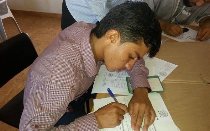 وأضاف أبو هاني أن الطالب يطّلع على شروط الالتحاق جيداً عند دخوله، وبعد التأكد من مطابقة المواصفات يحجز مقعده ويعبئ طلب الالتحاق.
