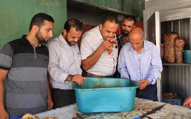 أتلفت مباحث التموين بشرطة خانيونس وبالتعاون مع دائرة الطب الوقائي التابعة لوزارة الصحة وصحة بلدية خانيونس، كمية كبيرة من لحوم الدجاج والحبش الظاهر عليها علامات الفساد الخاصة بأسياخ -الشاورما- في أحد المحلات بالمحافظة.