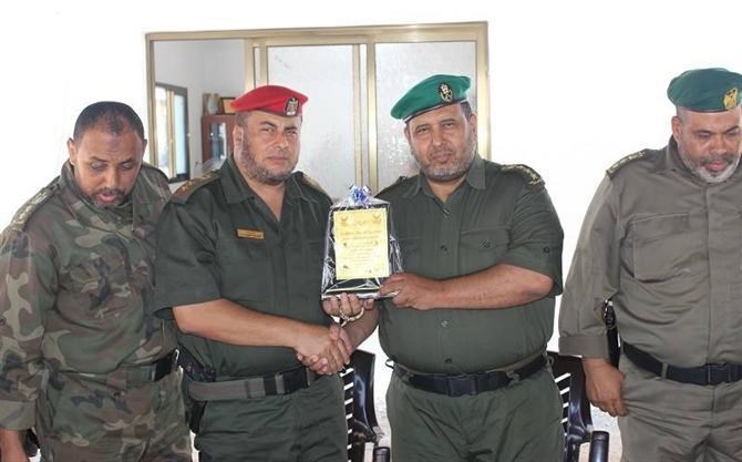 وفي نهاية الزيارة قدم العقيد محيسن درع تذكاري يحمل شعار الشرطة العسكرية للعميد الغول.