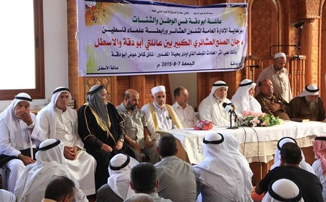 رعت الإدارة العامة لشئون العشائر والإصلاح بوزارة الداخلية والأمن الوطني بالتعاون مع رابطة علماء فلسطين صلحاً عشائرياً كبيراً بين عائلتي أبو دقة والاسطل في محافظة خانيونس جنوب قطاع غزة.
