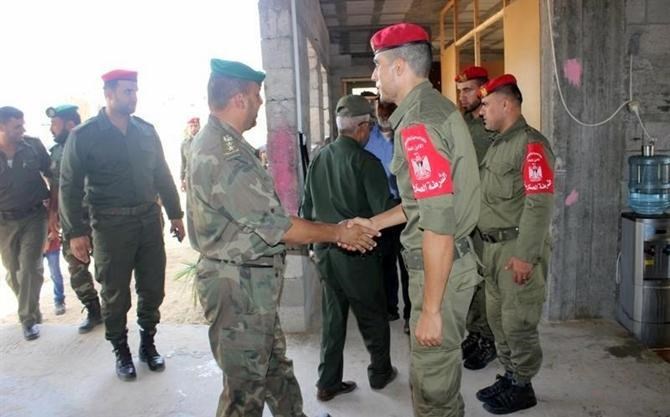 ورافق اللواء أبو عاذرة كل من قائد الشرطة العسكرية العقيد جهاد محيسن ونائب قائد قوات الأمن الوطني العقيد طارق أبو هاشم وقائد الكتيبة الوسطى العقيد إياد غانم ومدير مكتب القائد العام الرائد كمال راضي.