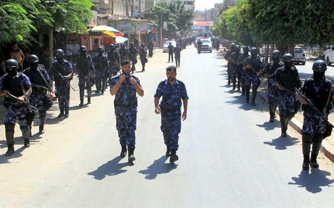 نظمت قوات التدخل وحفظ النظام التابعة لجهاز الشرطة الفلسطينية صباح اليوم الخميس في عدد من محافظات قطاع غزة مسيراً عسكرياً جاب الشوارع الرئيسية في المحافظات.