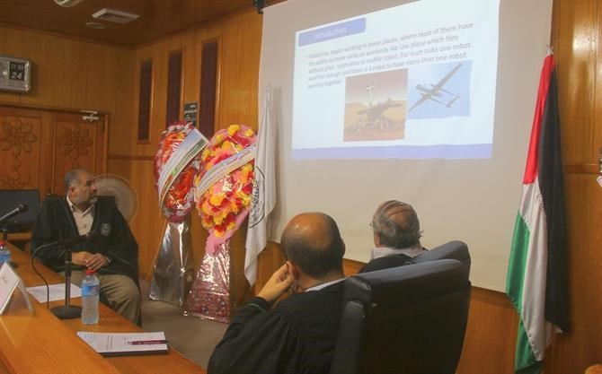 حصل المقدم المهندس عبد القادر المبيض مدير عام إدارة الحاسوب العسكري بوزارة الداخلية على درجة الماجستير حول التحكم في الروبوتات بعد المناقشة العلنية التي جرت في قاعة المؤتمرات بالجامعة الإسلامية.