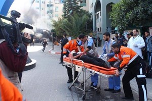 صور طواقم الدفاع المدني تنتشل عدداً من الشهداء من أحد المنازل في بئر النعجة