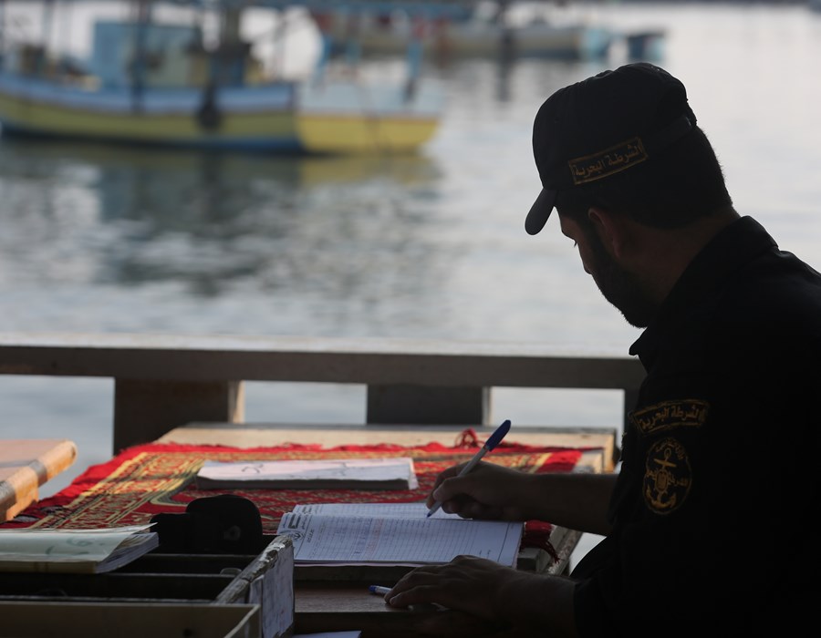 الشرطة البحرية تُنظم حركة الصيادين في ميناء غزة بنظام منظومة "الباركود" الإلكتروني