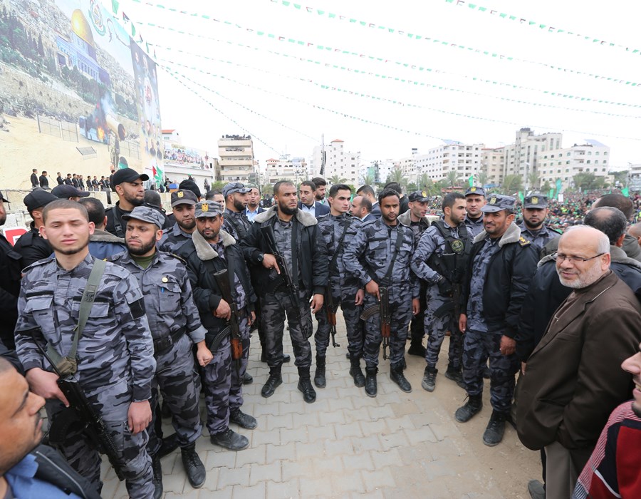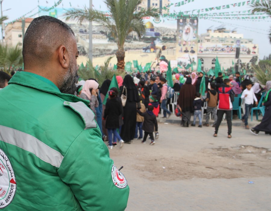 تأمين مهرجان انطلاقة حركة حماس في ساحة الكتيبة بغزة