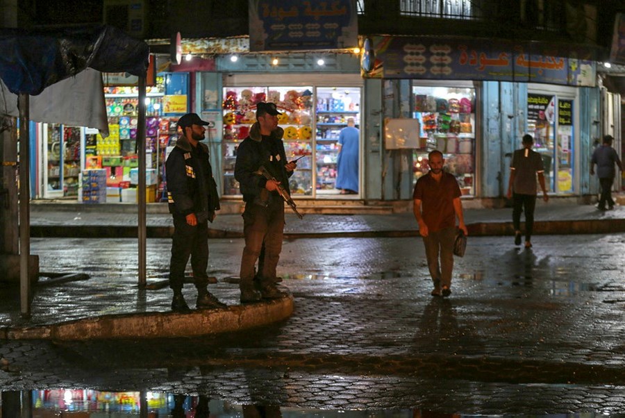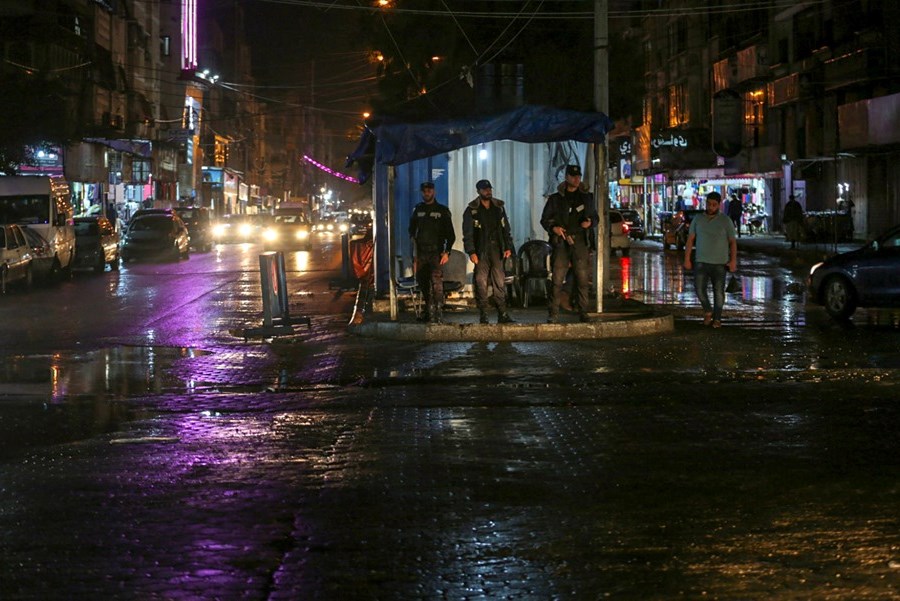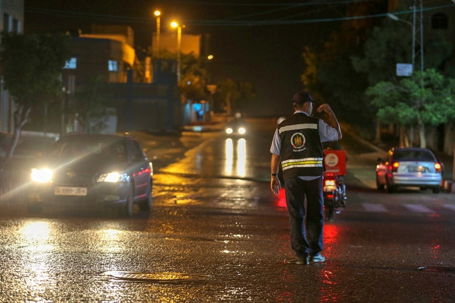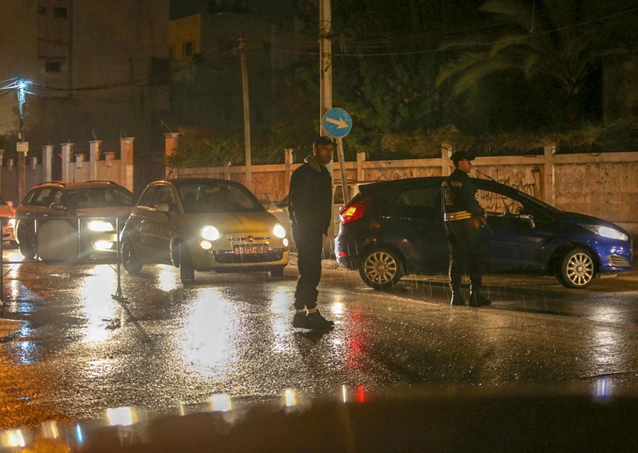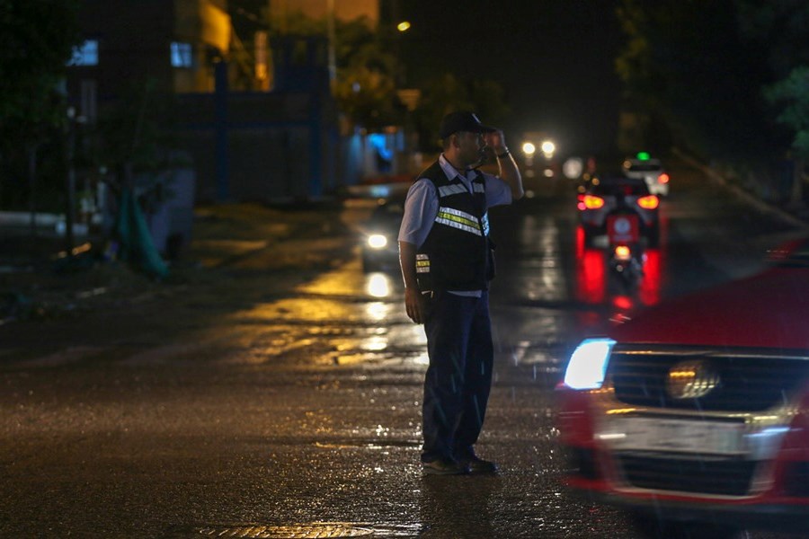 أفراد الأجهزة الأمنية خلال أداء واجبهم الليلة الماضية، أثناء المنخفض الجوي