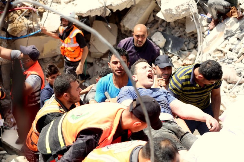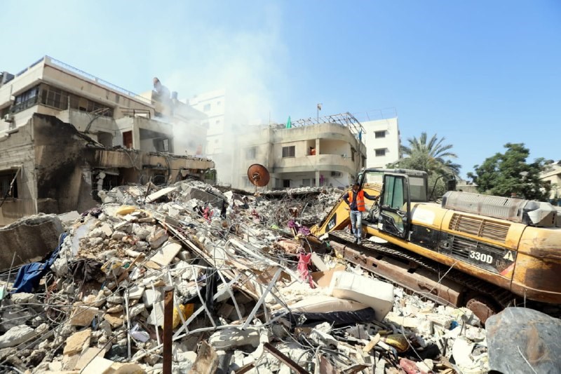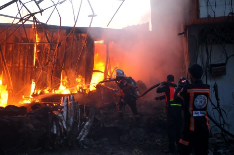 عمل أطقم الدفاع المدني والخدمات الطبية في متابعة آثار مجزرة "الرمال" بغزة