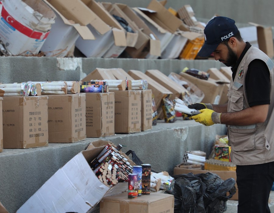 الشرطة تضبط ورشة لتصنيع المفرقعات شرق غزة