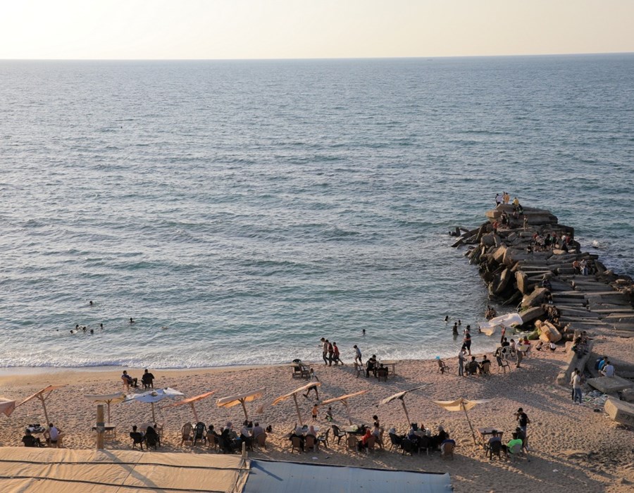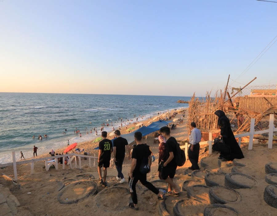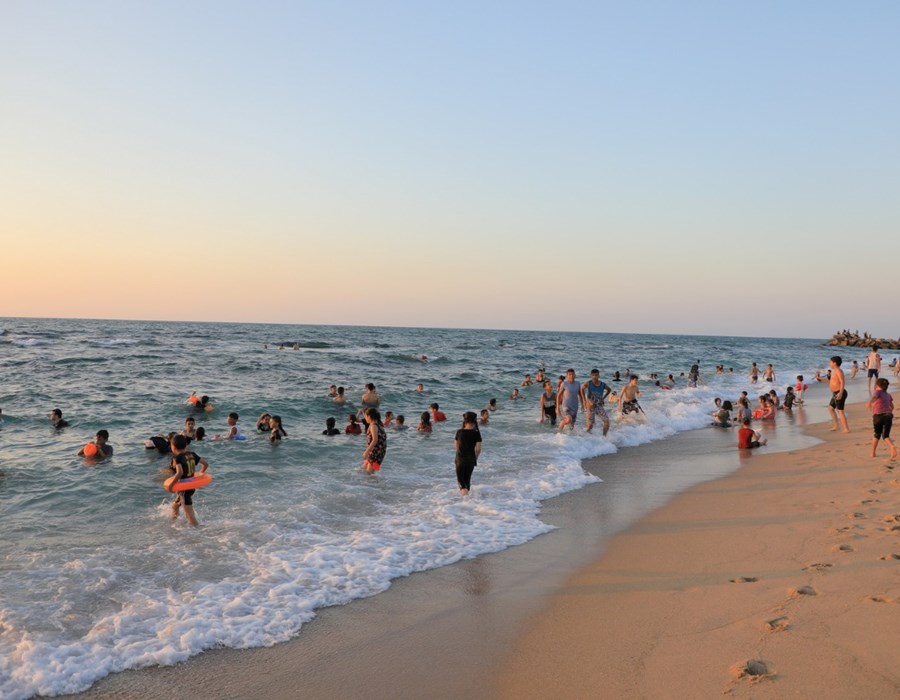 صور من استجمام المواطنين على شاطئ البحر خلال الإجازة الأسبوعية