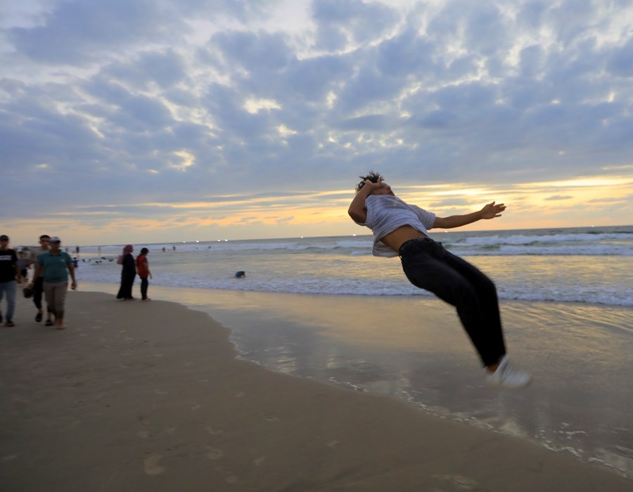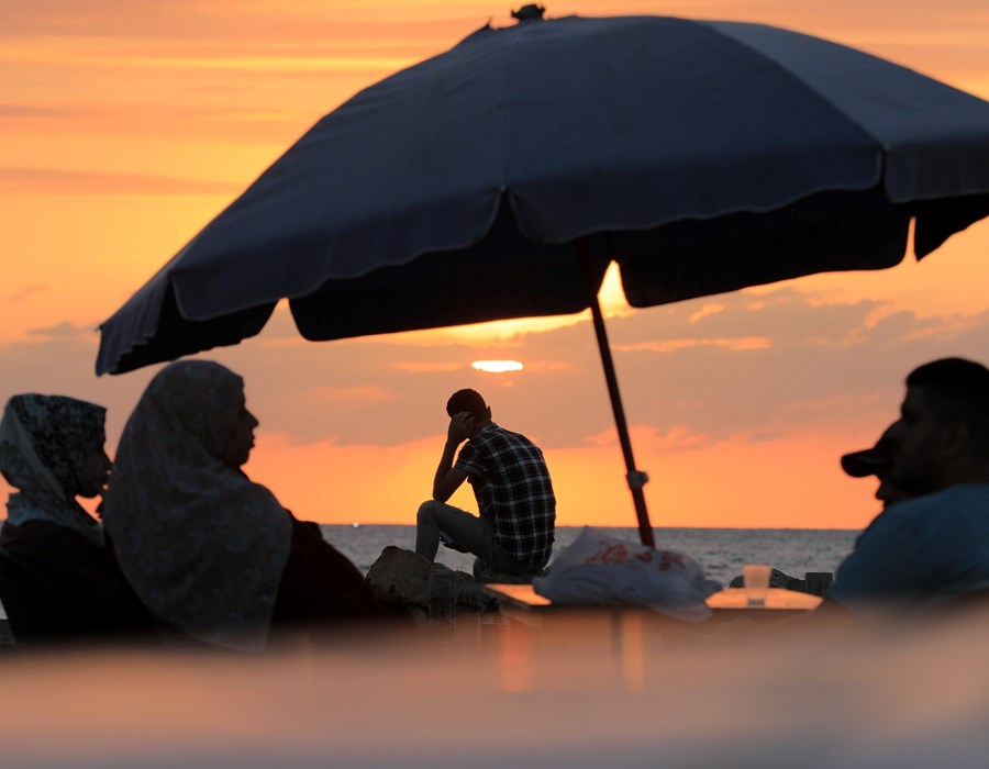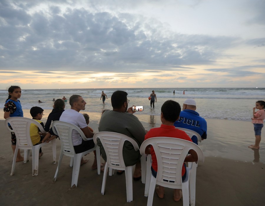 قضاء المواطنين في غزة الإجازة الأسبوعية على شاطئ البحـر