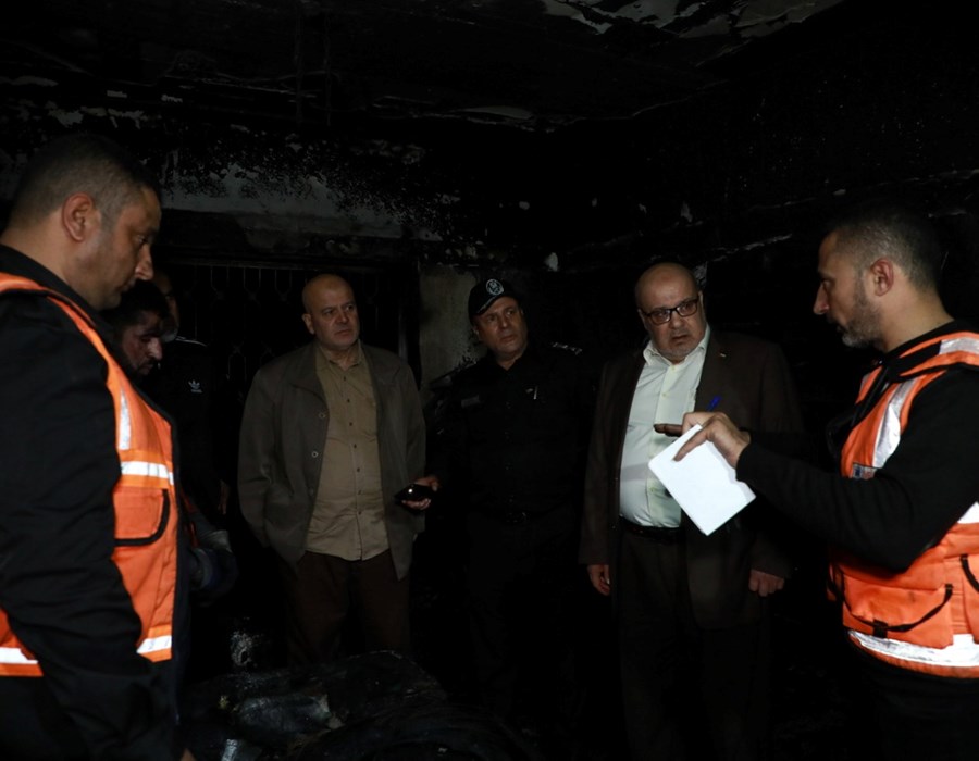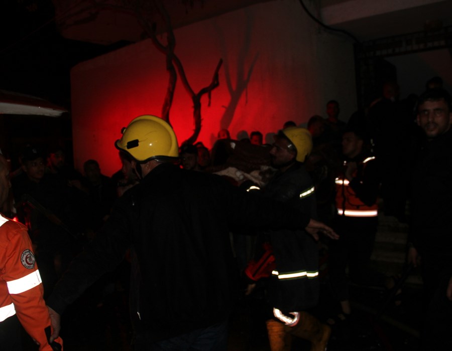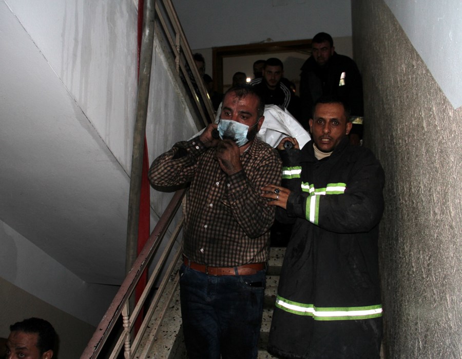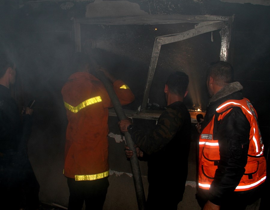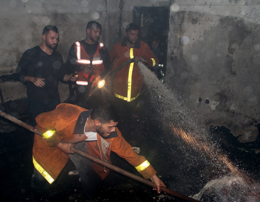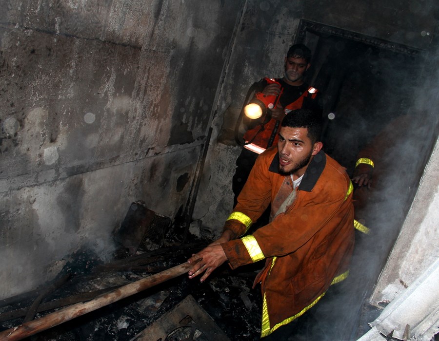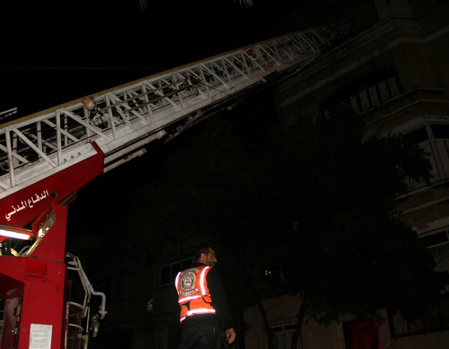 صور من تعامل أطقم الدفاع المدني والشرطة مع حريق البناية السكنية شمال غزة