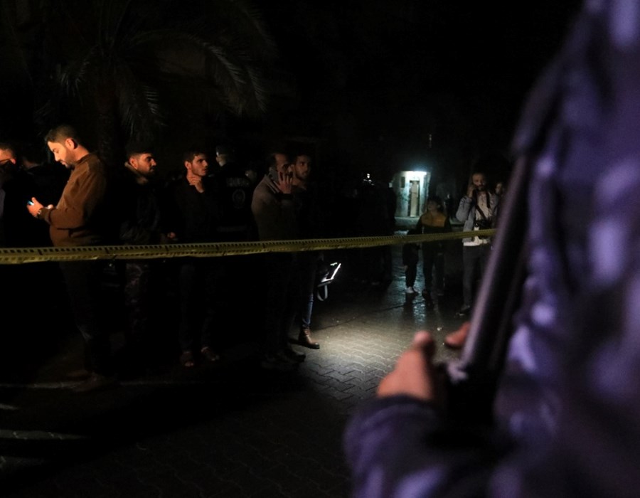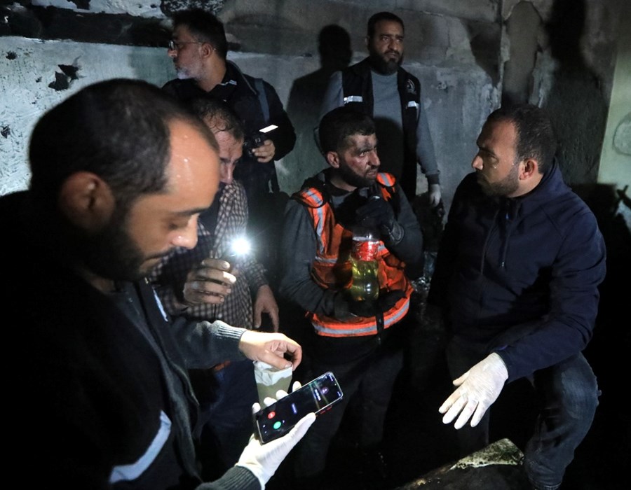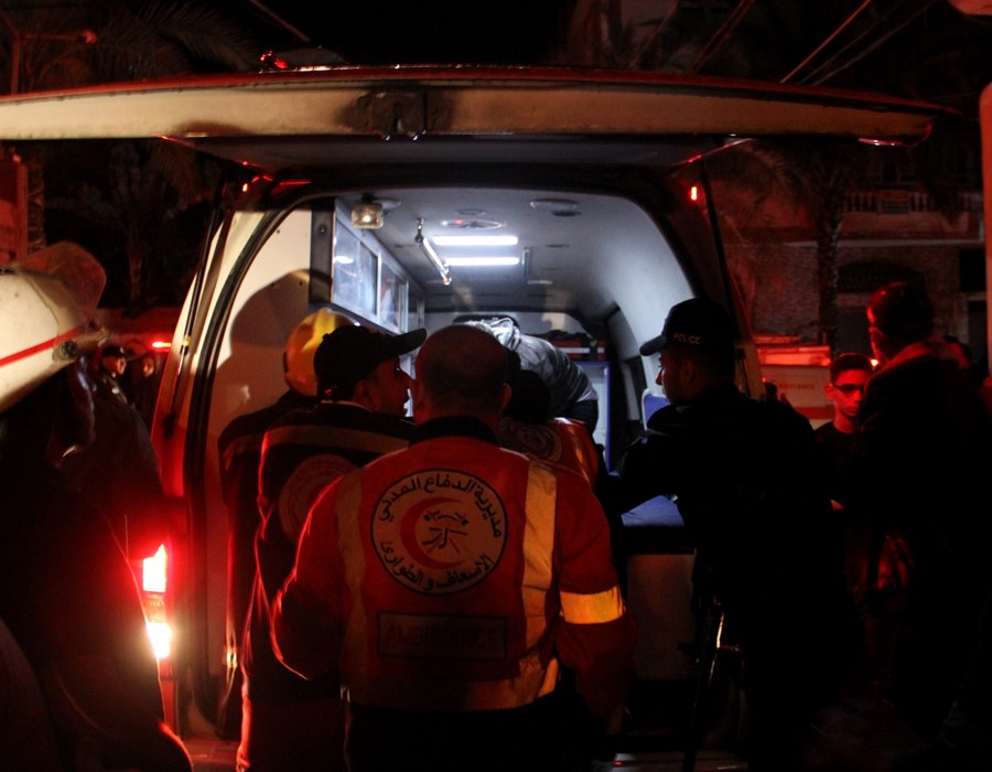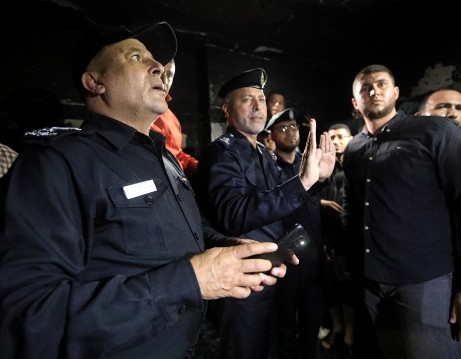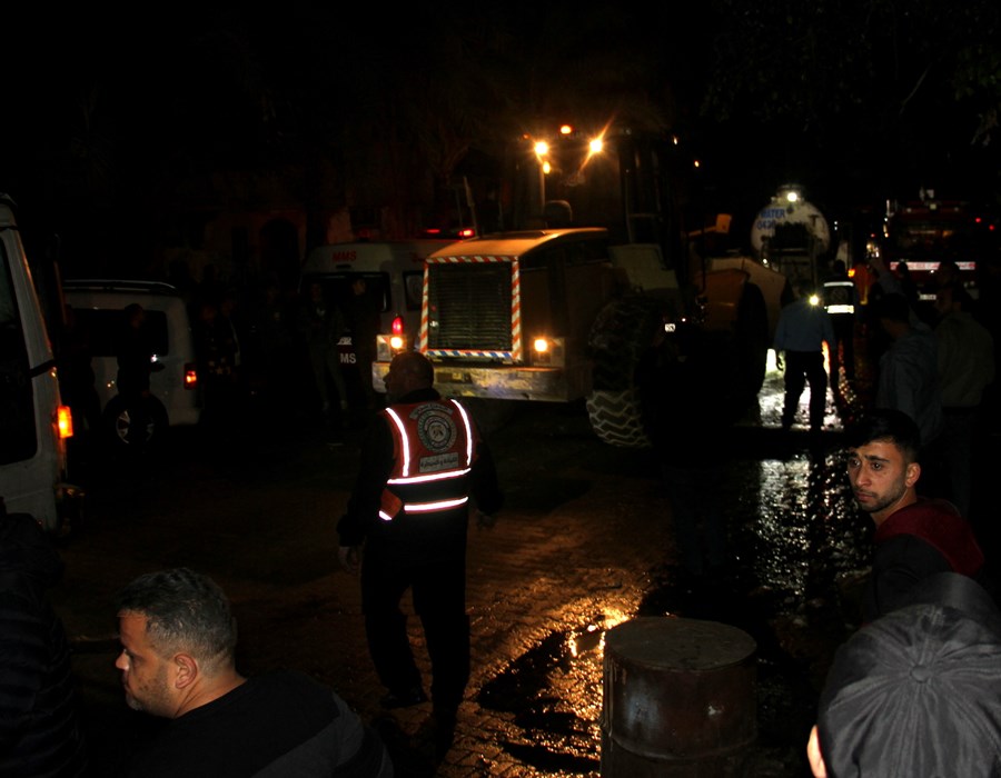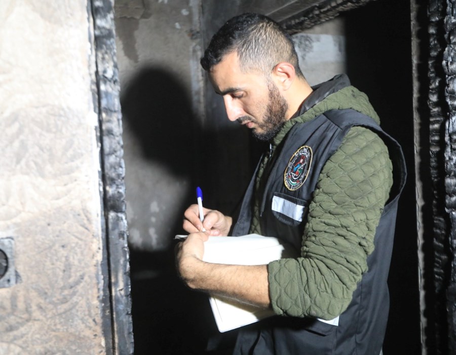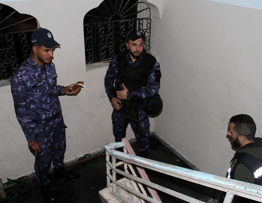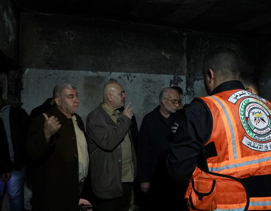 صور من تعامل أطقم الدفاع المدني والشرطة مع حريق البناية السكنية شمال غزة