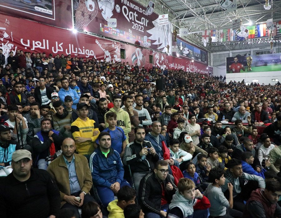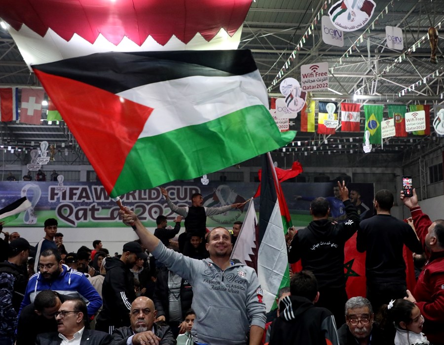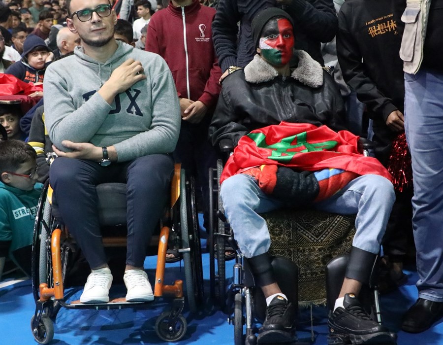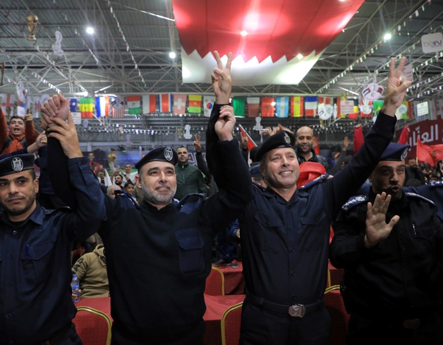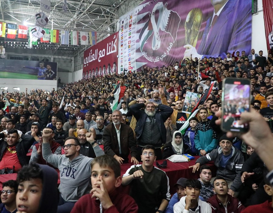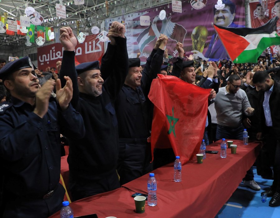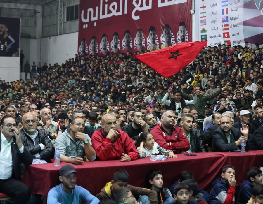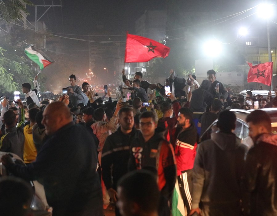 أجواء متابعة المواطنين بغزة مباراة منتخب المغرب في كأس العالم بقطر والاحتفال بتأهله التاريخي لنصف نهائي البطولة