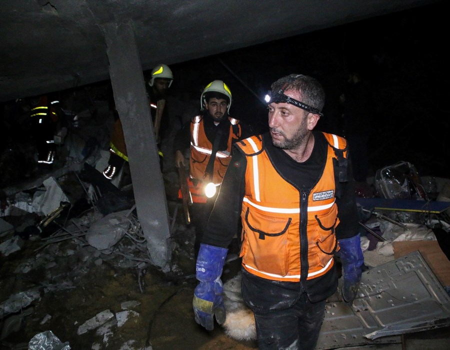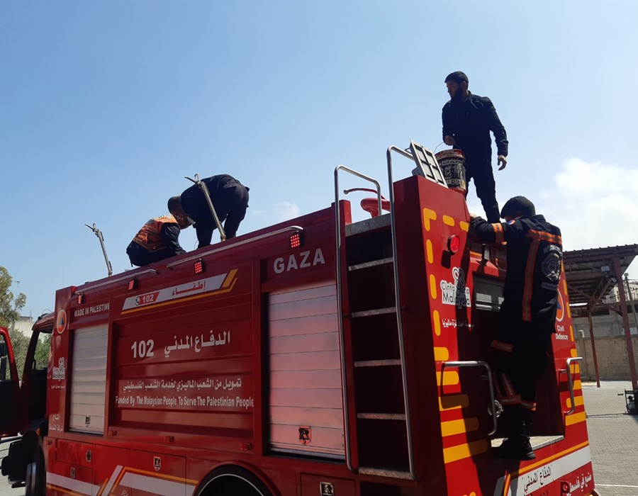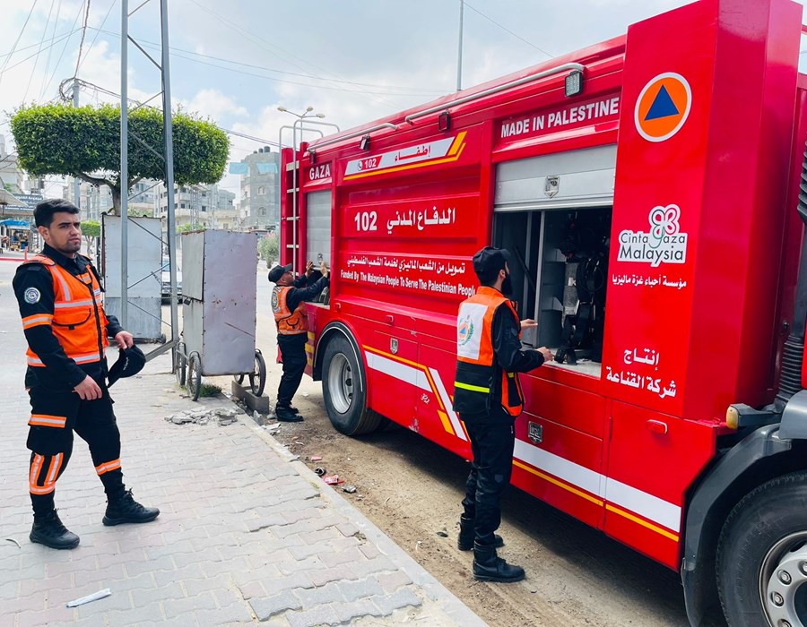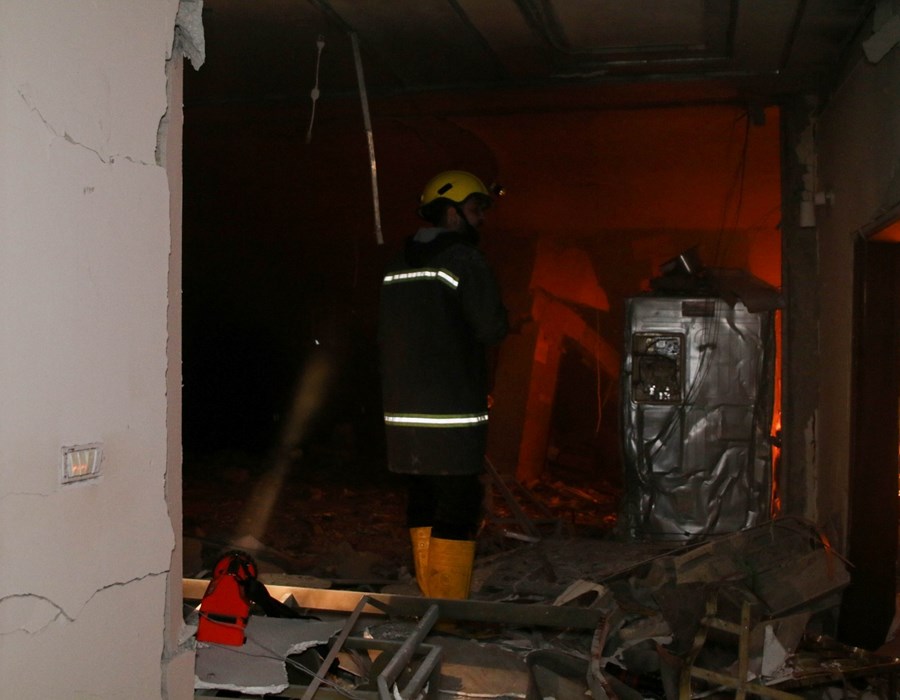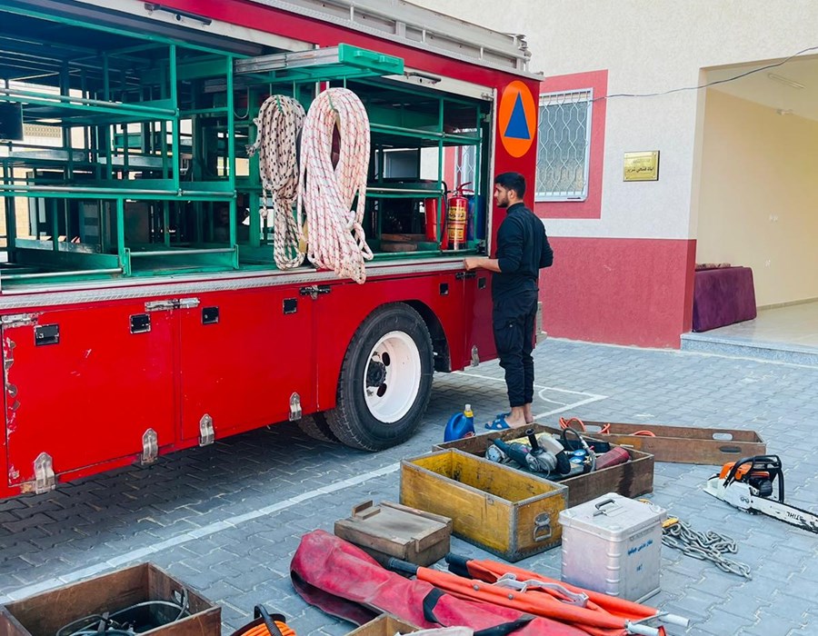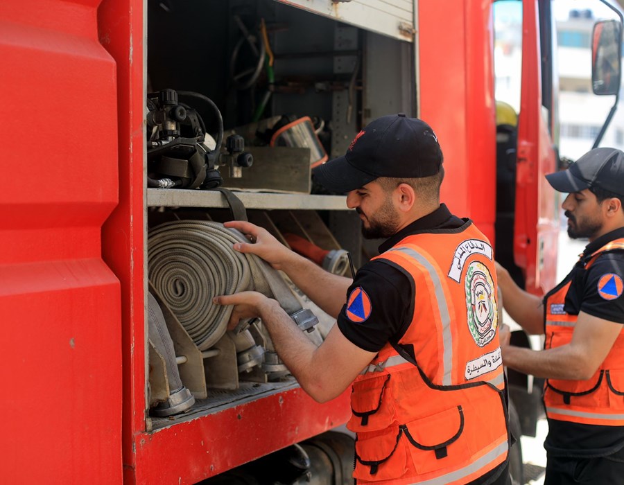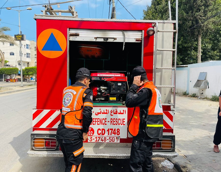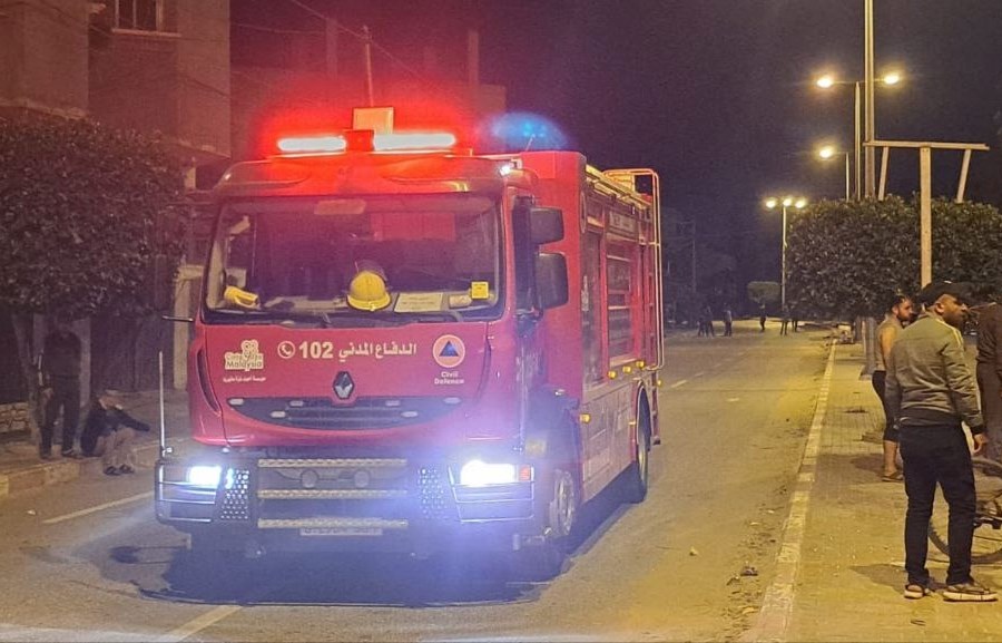 أطقم الدفاع المدني تتعامل مع آثار العدوان الإسرائيلي