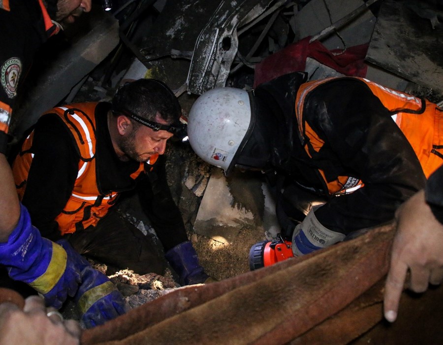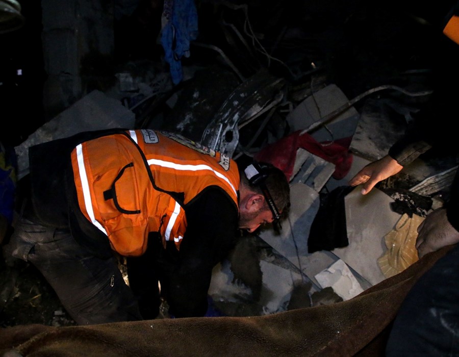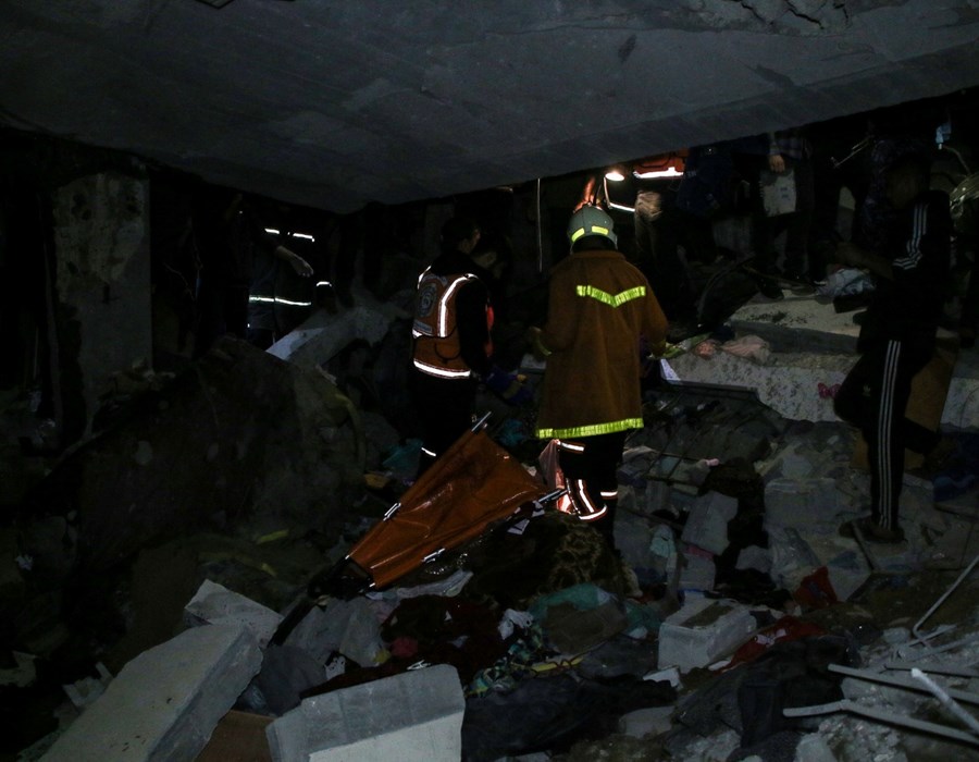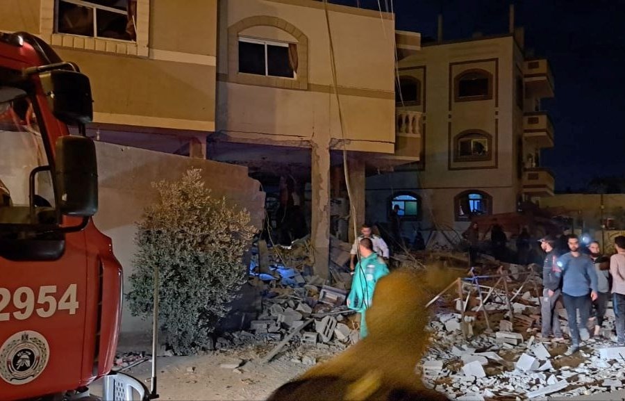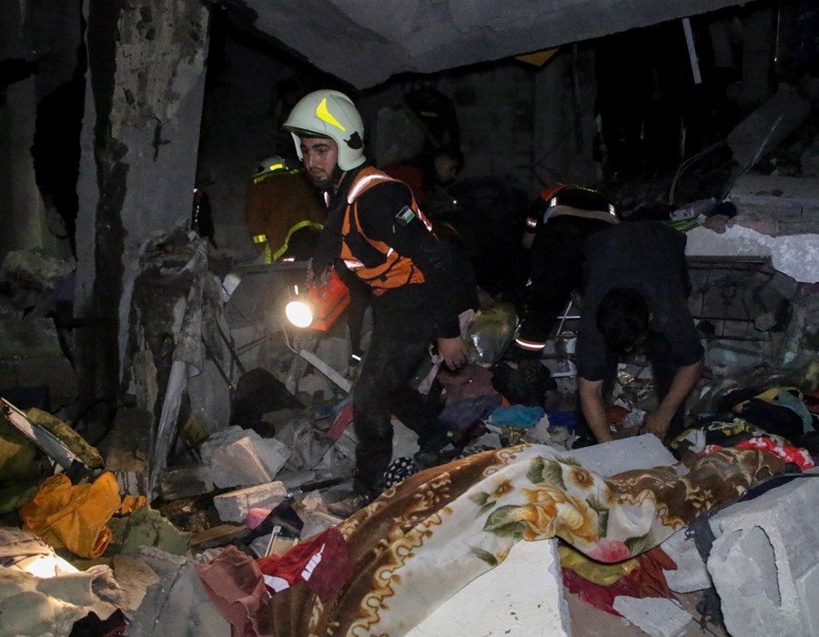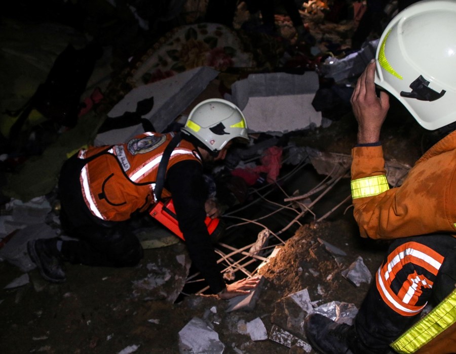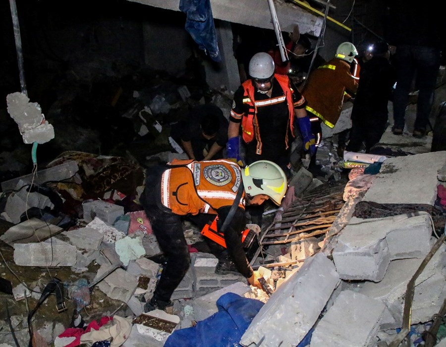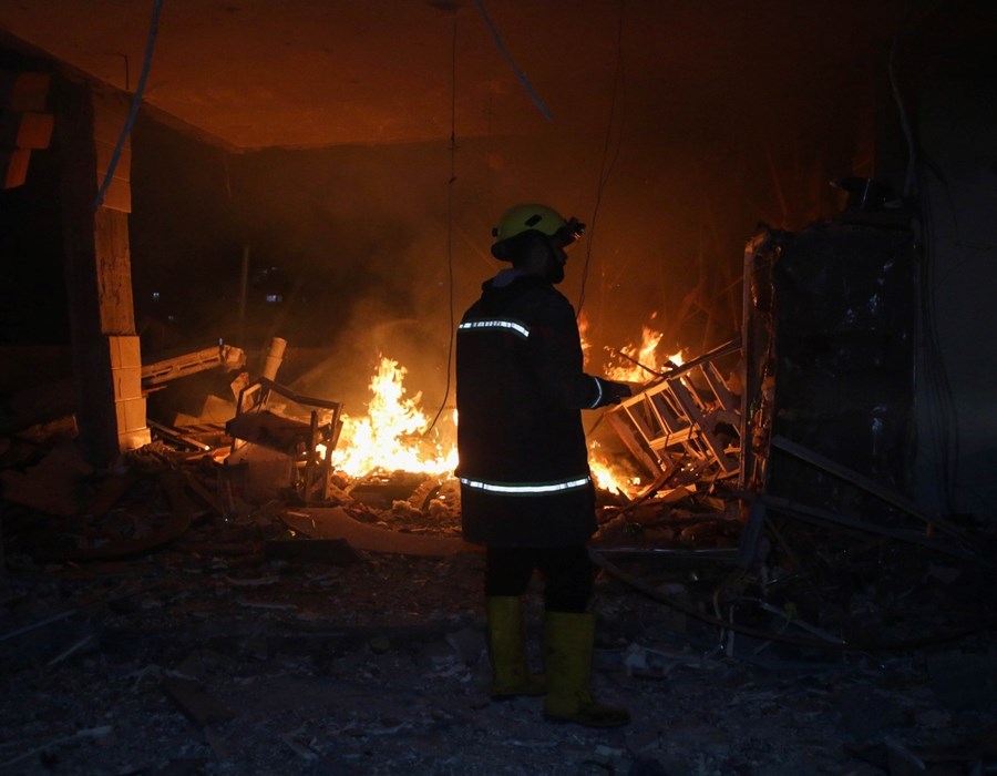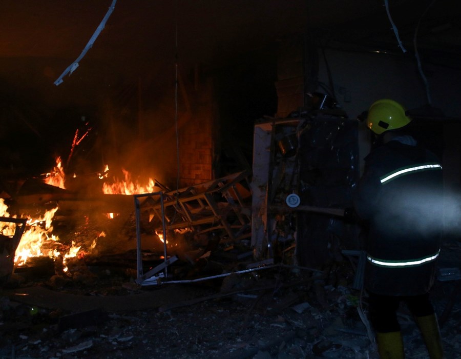 أطقم الدفاع المدني تتعامل مع آثار العدوان الإسرائيلي