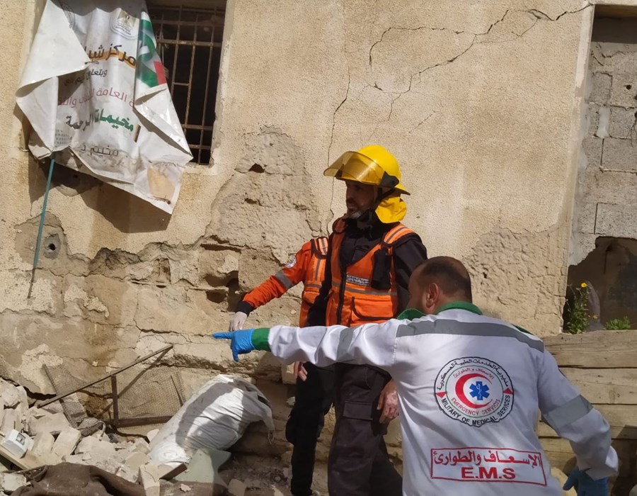 أطقم الدفاع المدني والخدمات الطبية العسكرية خلال قيامها بواجبها الوطني