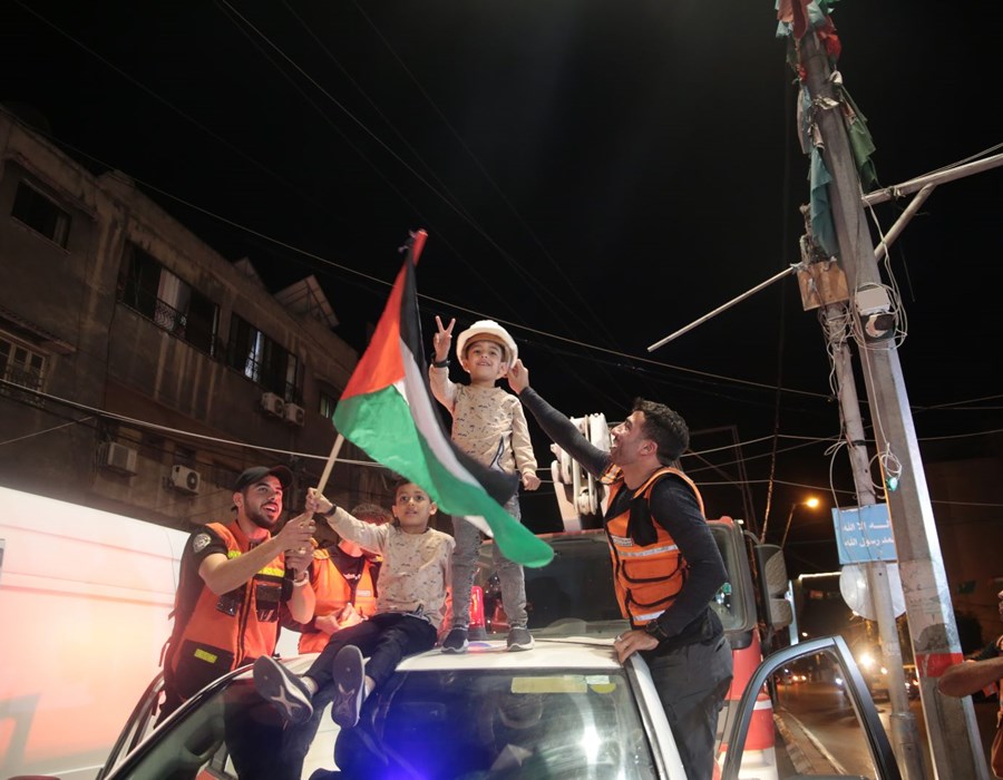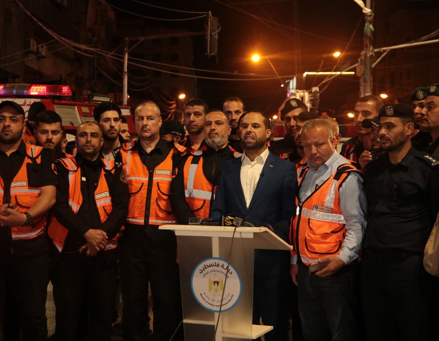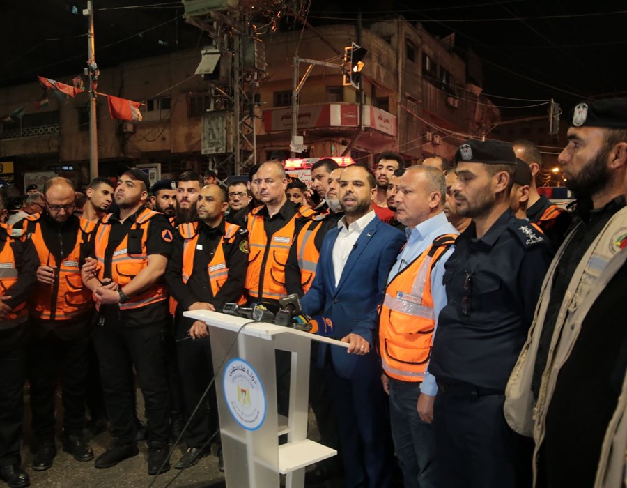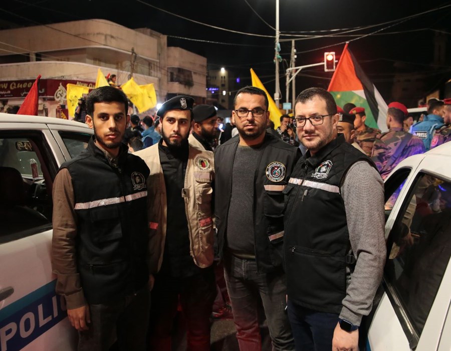 مؤتمر صحفي ومسير للطواقم الميدانية بأجهزة وزارة الداخلية مع بدء وقف العدوان الإسرائيلي على غزة