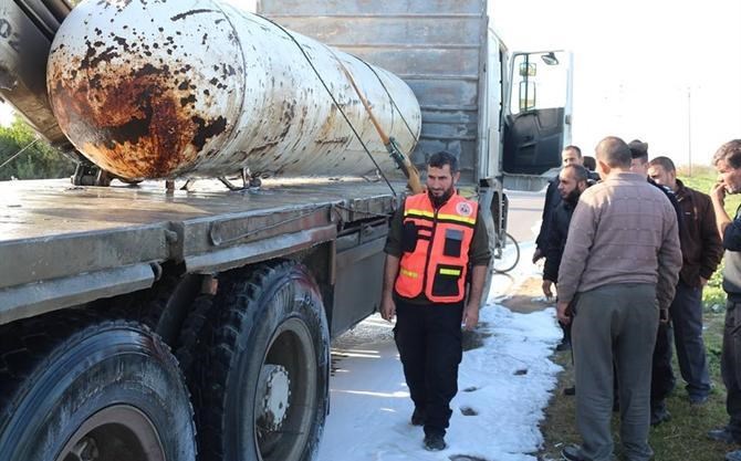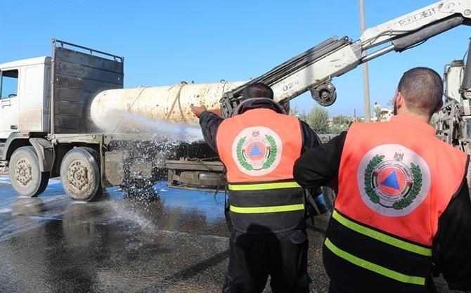 تعاملت طواقم الدفاع المدني مع حادثة تسرب غاز طبيعي من أحد الصهاريج المخصصة لنقل الغاز على