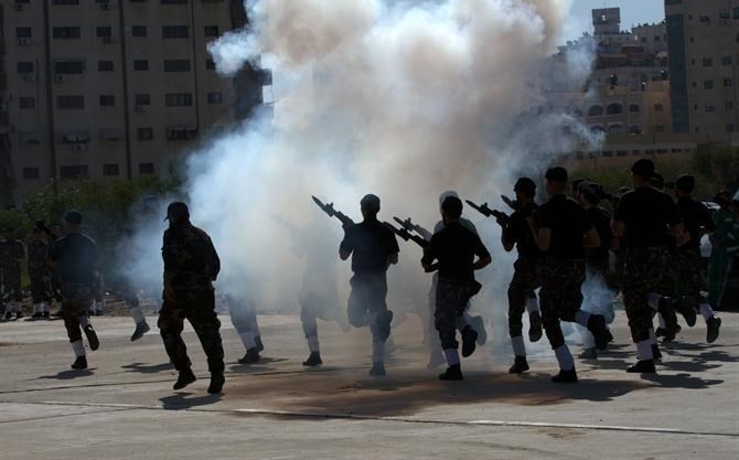 بدوره، قال اللواء أبو نعيم إن وزارة الداخلية "تخرج هذه الثلة لتحمل لواء التحرير والعمل ولا زال شلال الدم يخضب تراب الوطن ليعانق دماء شهداء انتفاضة القدس".
