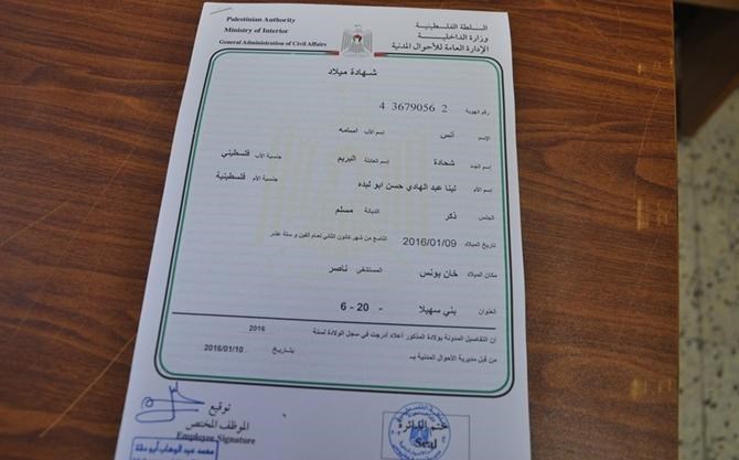 وأثنى المواطن أسامة البريم على دور وزارة الداخلية في تفعيل هذه المكاتب، موجهاً شكره لكافة العاملين في مكتب تسجيل المواليد في مستشفى ناصر الطبي لا سيَّما بعد إصدارهم شهادة ميلاد ابنه "أنس" بسرعةٍ كبيرة دون أي عناء.