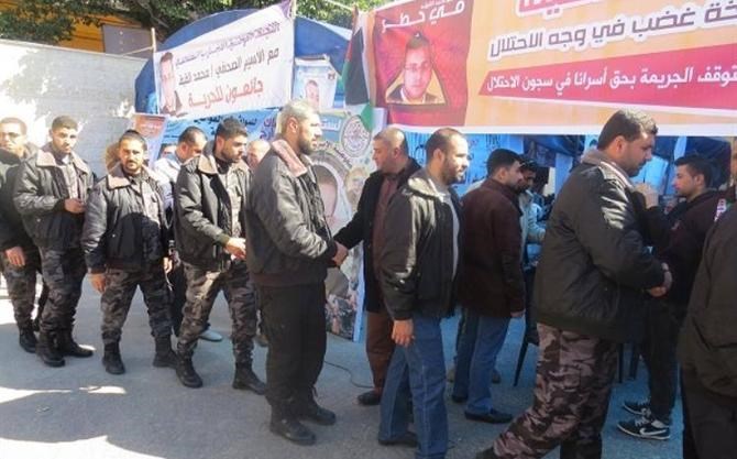 هذا ورفع _أيضاً_ ضباط وأفراد جهاز الأمن والحماية صور الأسير القيق, ولافتات مطالبة بالالتفاف حول قضية الأسرى وتفويت الفرصة على الاحتلال من الاستفراد بقضيتهم.