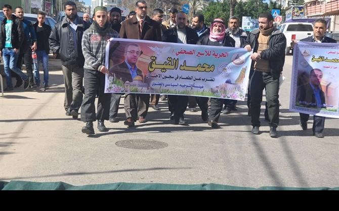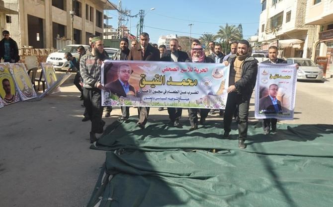 ورفع ضباط وأفراد الهيئة صور الأسير المضرب عن الطعام منذ 73 يوماً محمد القيق، مُطالبين بتدخل المنظمات الدولية بشكلٍ عاجل للإفراج عنه.