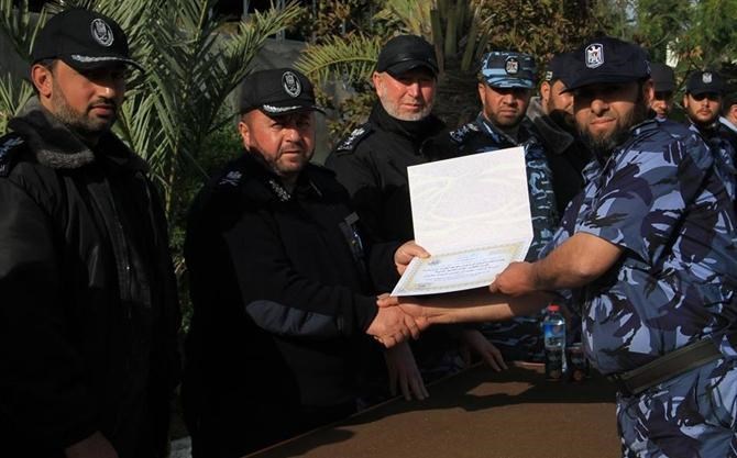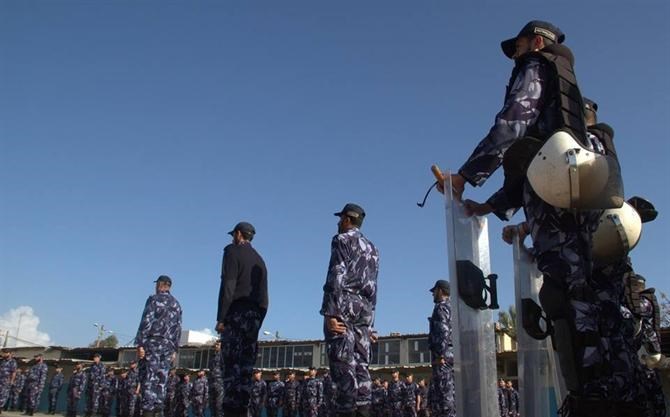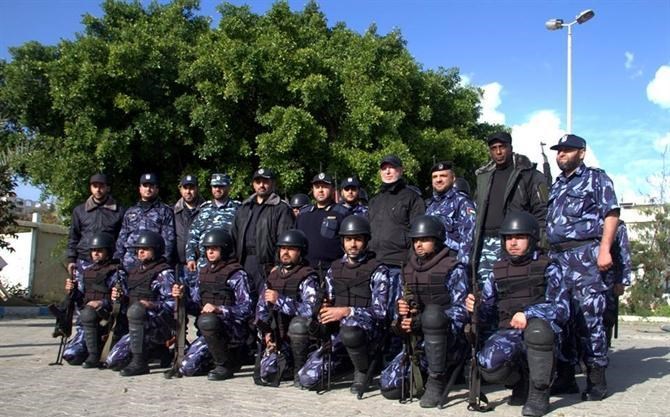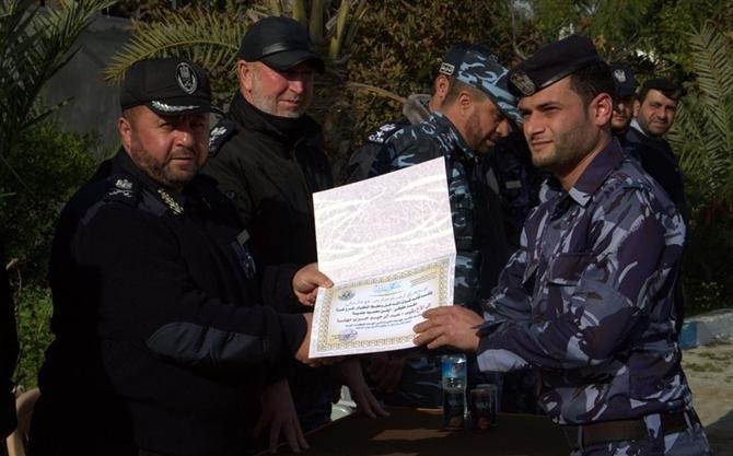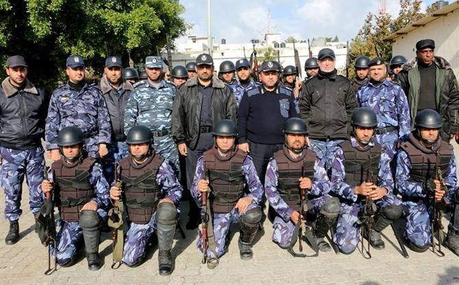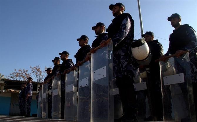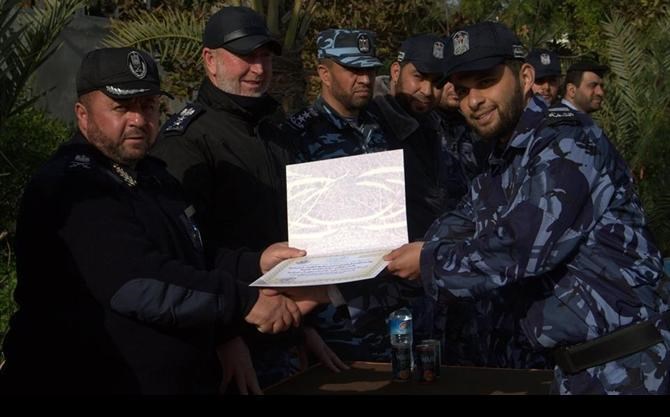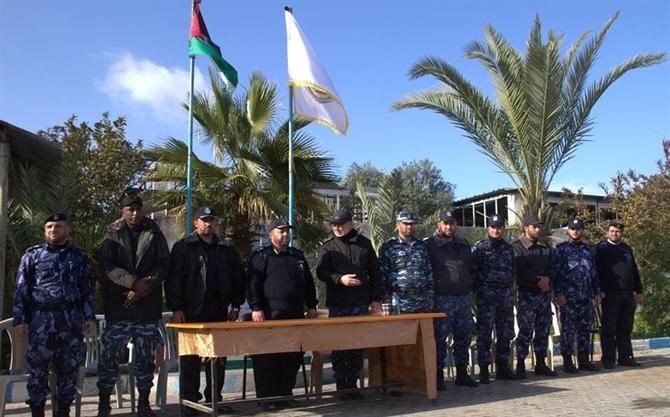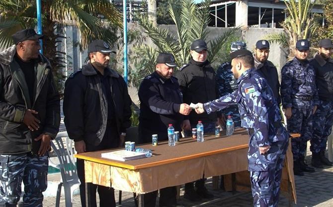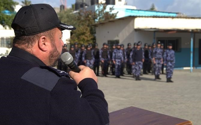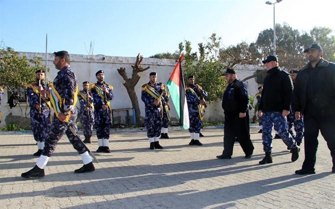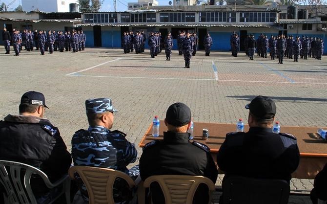 نظمت قوات التدخل وحفظ النظام في الشرطة الفلسطينية بمحافظة غزة طابور أركان لضباطها وصف ضباط وأفرادها في مقرها بمدينة عرفات للشرطة وسط المدينة.