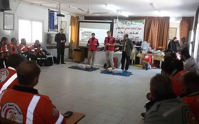 عقدت إدارة الإسعاف والطوارئ في الدفاع المدني بالتعاون مع مؤسسة "humedica-civil defense" دورة تدريبية في "إنعاش القلب الرئوي" والتعرف على عمل جهاز الارتجاف الآلي (AED)، بمشاركة كافة ضباط الإسعاف في محافظات القطاع.
