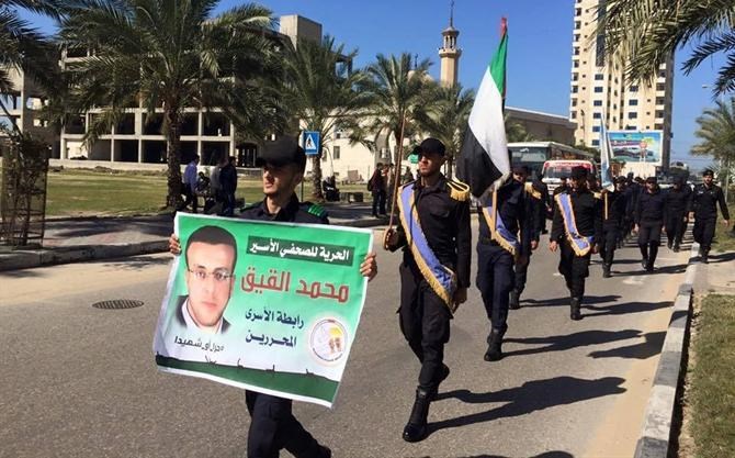 وشارك في هذه الوقفة ضباط وضباط صف وجنود وطلاب الكلية وعدد من قادة الفصائل والأجهزة الأمنية أمام مقر اللجنة الدولية للصليب الأحمر بغزة.