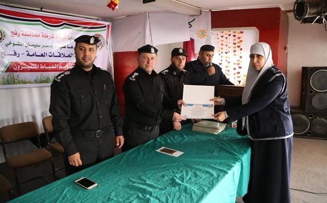 نظَّمت دائرة العلاقات العامة بالشرطة الفلسطينية بمحافظة رفح حفل تكريم للضباط المتميزين ، تحت رعاية قيادة شرطة محافظة رفح، في قاعة مكتبة البلدية وسط المدينة.